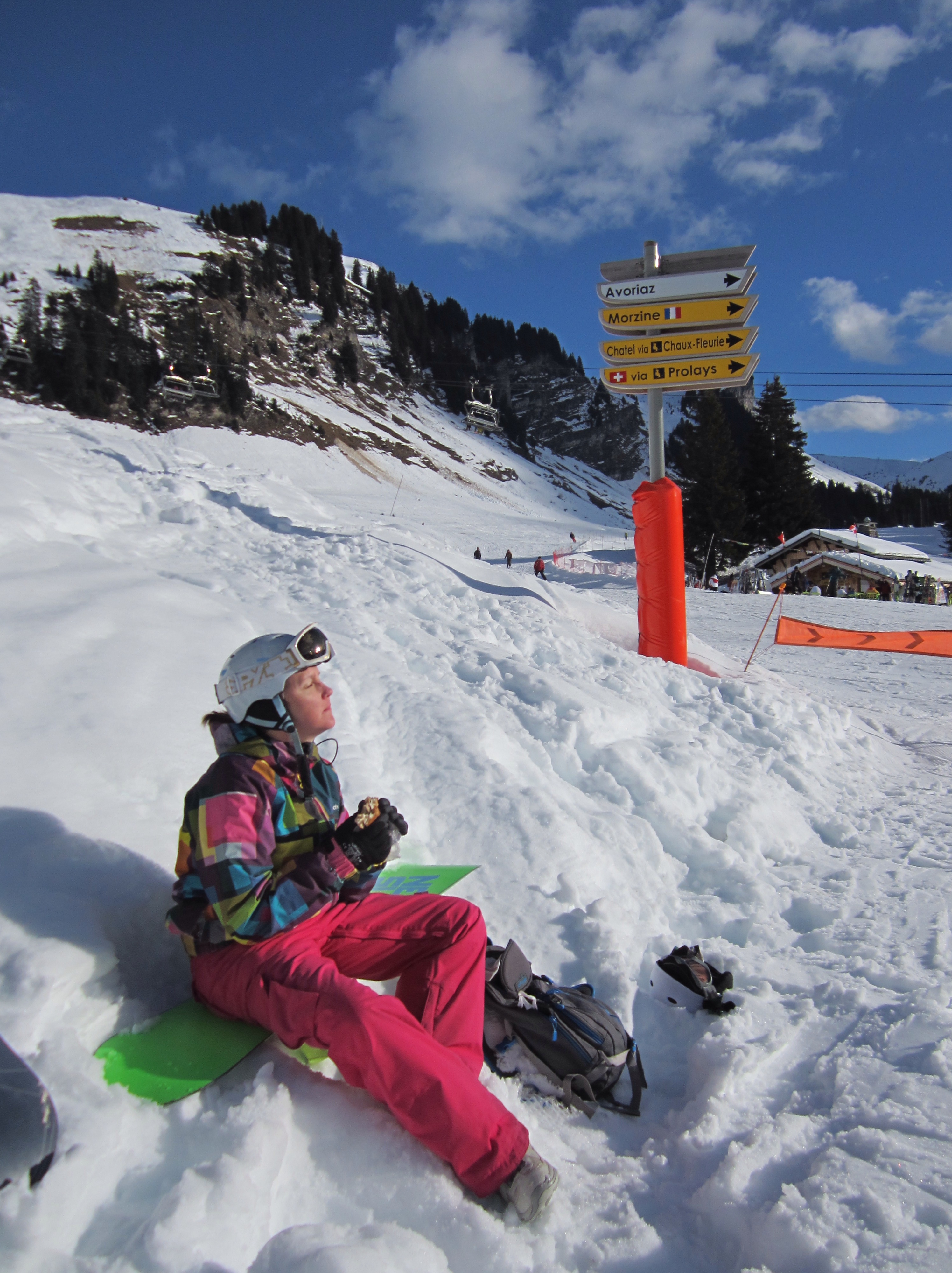 This is the lunch we eat just about everyday on the mountain. Even on the odd day off, we are still likely to build this delicious treat, with the added extra twist of a fresh baguette (quite often still warm – as Jules will often show by slapping it in Rob’s face). The recipe was possibly born in Les Arcs many years ago when 3 young men lived in a little shoebox and spent a season snowboarding, telemarking and chasing women (and in one case actually catching one). Respect to the boys for the two weeks that they let me stay with them to snowboard, telemark (spectacularly unsuccessfully) and to watch them chase women (mostly).