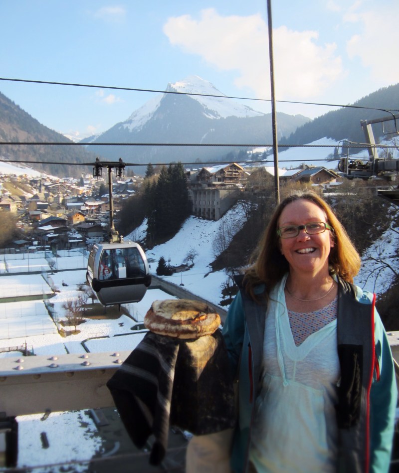 So we planned to rendezvous (great French word) on Tuesday afternoon when the bar opened with samples of our sourdough that we could taste and chat about. Perfect. Well almost. Except that a boozy lunch on Monday got in the way. We had two bowls of sponge on the go, and went snowboarding, had an awesome morning with 25cm fresh snow, off piste, dropping wind lips into deep tree runs and then final couple of amazing tree runs into the restaurant Chez Nannon (for the 2nd time in 2 weeks). Addy B, AK, Jules and Rob arrive after making reservation (all in French by the way, oh yes). Cote de Boeuf for 2, pork knuckle, and Le Berthoud (Abondance cheese with Madeira with potatoes, sliced meats etc…)