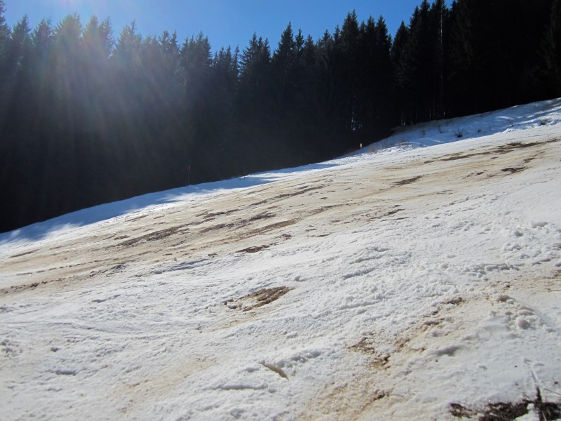 And just to give a perspective on the lead up to the dump of snow we had in the last two days, we thought we would put up a small gallery of some of the pistes and slopes we were riding in the 3 weeks of sunshine. Blue skies and brown snow…