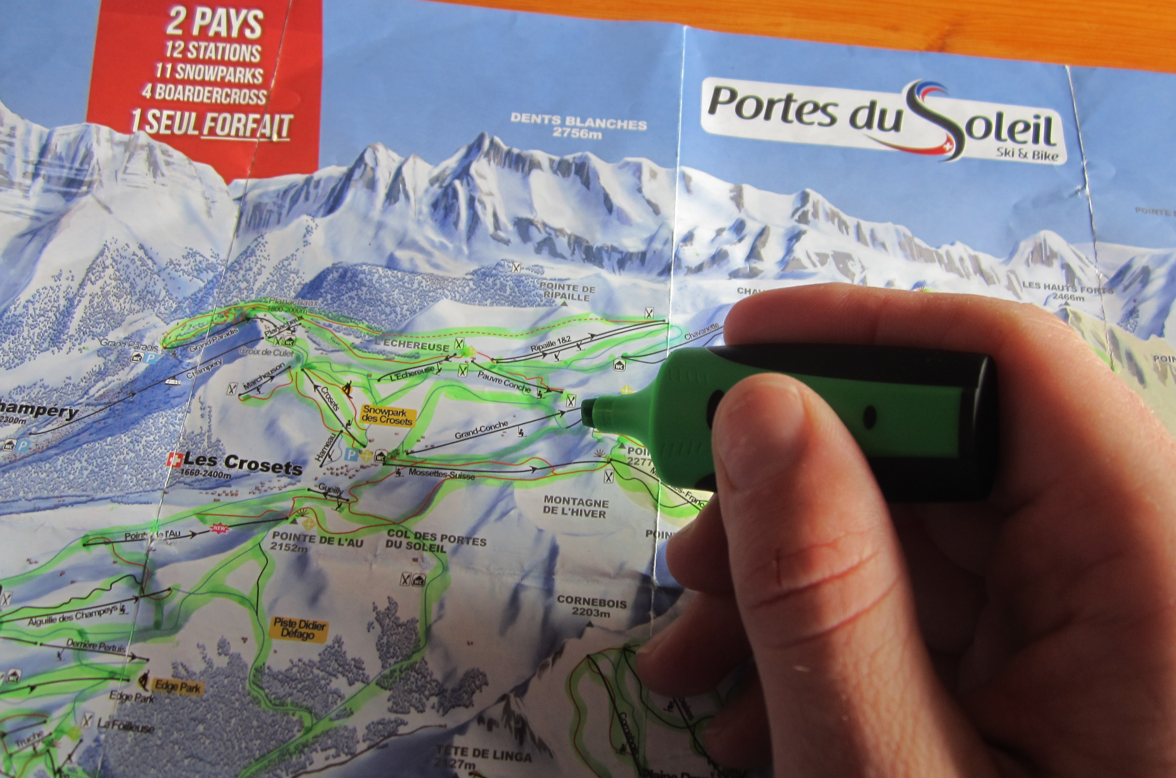 We have been on a mission. One that has proved to be challenging and exciting, sometimes it has felt like a task which has been both fun and at times frustrating… It had lots of ups and downs (please excuse the pun). UP – 200 lifts/pommels/t-bars/telecabins/walking. DOWN – 650km of piste. Twelve (or so) resorts in France and Switzerland all linked together as the Portes du Soleil. Morzine, Les Gets, Avoriaz, Chatel, Champoussin, Les Crosets, Champery, Morgins, La Chapelle-d’Abondance, Saint-Jean-d’Aulps, Torgon and Abondance. Across fourteen valleys it ranks in the top two largest ski areas in the world with Les Trois Vallees.