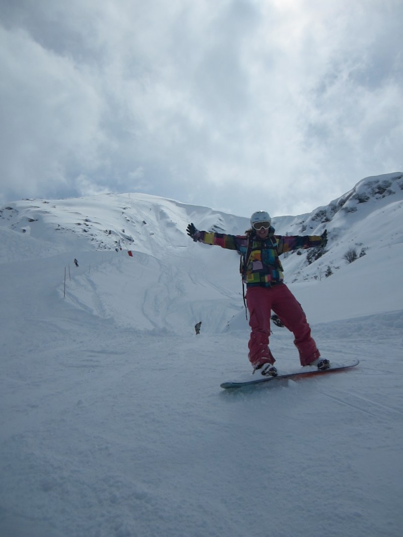 Celebrating completing our first off-piste run down Ponte de Chesery into Plane Dranse